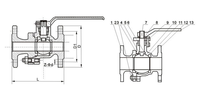 球閥的球體是浮動(dòng)的,在介質(zhì)壓力作用下,球體能產(chǎn)生一定的位移并緊壓在出口端的密封面上,保證出口端密封。