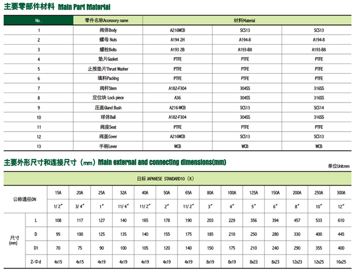 日標(biāo)不銹鋼球閥結(jié)構(gòu)圖及參數(shù)表